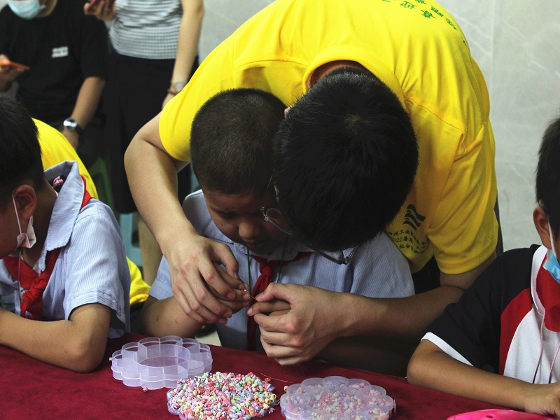 社会实践的第三阶段,实践团开展“彩虹暖心有约”活动,志愿者们真心付出,用心陪伴孩子们做手工、串珠子、促膝畅聊,倾听视障儿童的微心愿。在互动交流环节,孩子们也毫不吝啬,将自己的才艺一一展示,他们有的唱歌、有的吹陶笛、有的背诵古诗,精彩的表演饱含了对生活的热爱和对生命的不放弃。实践团为15名视障儿童精心准备了爱心礼包,最后活动在大家在合唱的《我相信》中圆满结束。