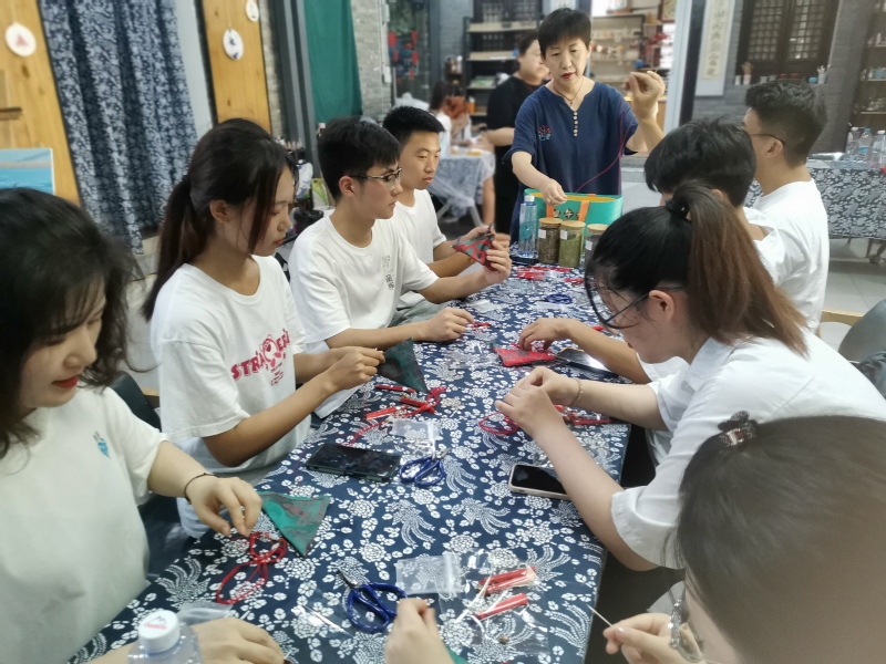 体验手工技艺,让非遗更好传承中华文明。来到以民俗风情为招牌的回龙窝,由非遗工作坊宗老师从香包的文化内涵、制作材料、到工艺流程等方面进行了详细的讲解,队员们了解到,徐州香包的历史至少可以追溯到战国时期,它寄托着人们祈求祥瑞、辟邪纳福、丰衣足食的美好愿望。为了深入了解香包历史和制作工艺,队员们亲自学习制作香包,在制作香包过程中,不仅让学生真切地感受到中国悠久的历史,同时也能传扬传统文化的魅力,感受中国的民俗风情。