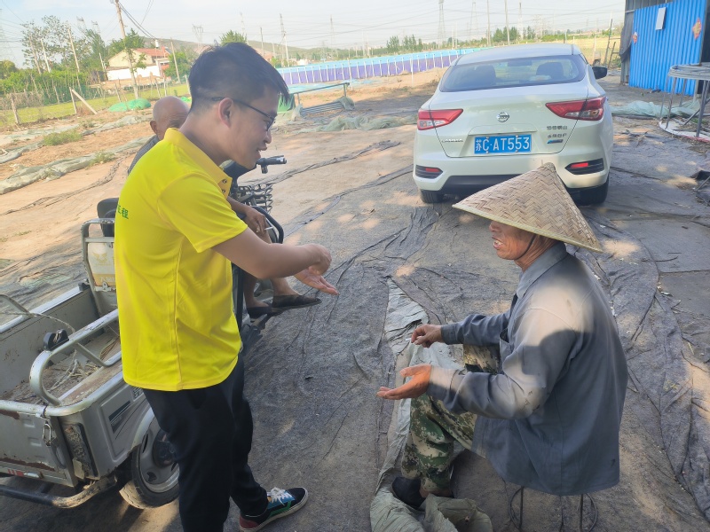 交流中团队成员应用专业向农户进行了科普:地膜的原料是人工合成的聚乙烯材料,但很难在自然条件下通过光、热、细菌等方式降解,土壤中的残留地膜尽管破烂不堪,在200年内不会降解;选用地膜时应贯彻执行农用地膜国家强制性标准(GB13735-2017,拒绝选用厚度0.01mm以下不符合国家标准的超薄地膜,用后的废地膜可捡拾回收;地膜残留量每亩在4公斤以上,就可使农作物减产10%以上,可使玉米减产11~23%,水稻减产10-14%,蔬菜减产14~59%;废旧地膜经过处理后还可以成为有用之材。
