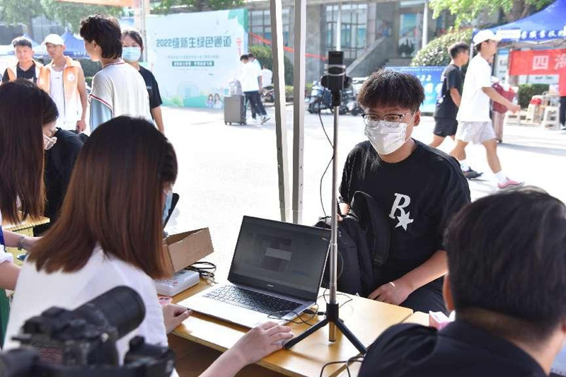 报到现场,通过人脸识别技术,对新生身份进行严格核验,实现新生“身份核查三比对”,即学生的现场照、高考录取照片和身份证照片进行三者比对,快速核实确定学生身份信息,有效方便学生入学,使迎新工作流程得到优化。