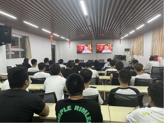 学工处组织2022级全体新生在教官的带领下于军训现场以排为单位集体观看视频,新生根据学习内容现场发表感言;校团委组织“青年学习社”、思政理论社团青年学子开展集体学习和研讨;马克思主义学院将“同上一堂思政大课”纳入到“习近平新时代中国特色社会主义思想概论”课程的实践教学环节,组织全体2021级学生以宿舍为单位观看并书写观后感。