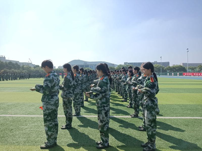 清晨,信息工程学院22级新生在操场上庄严肃立,奏唱国歌。上午十时,伴随着防空警报响起,全体同学脱帽,缅怀先烈,为在抗日战争中逝去的同胞默哀。随后,学院组织学生以连队为单位开展“勿忘国殇,砥砺前行”主题微团课,由各排学生代表分享抗日红色小故事,交流近期的军训感悟。最后,七营营长施教官带领全营庄严宣誓:永远忠于祖国、热爱祖国,为中华之崛起而奋勇向上,为民族之复兴而努力拼搏!
