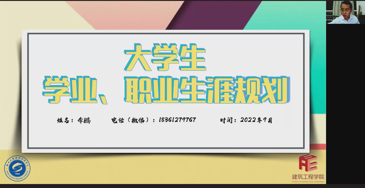 以未来发展为追求。为增强学生专业认同感和归属感,不断丰富自己的专业结构,做好学业成长规划,建筑工程学院为新生开展了“引见-我的学业”专题讲座。通过介绍六大专业历史与发展、就业前景等,激发新生学习兴趣和动力,帮助新生熟悉专业情况、明确专业学习目标、树立正确的个人发展规划和职业生涯规划。此外,李鹏老师为新生开展了“大学生学业、职业生涯规划”线上教育课,从“我该怎么做”、“我能干什么”、“给新生一些建议”三个方面进行阐述,引导学生清晰的认识自我,对自己的爱好、兴趣、特点和能力进行综合分析与权衡,帮助新生挖掘自身潜能,进一步增强大学生应对社会竞争的能力。