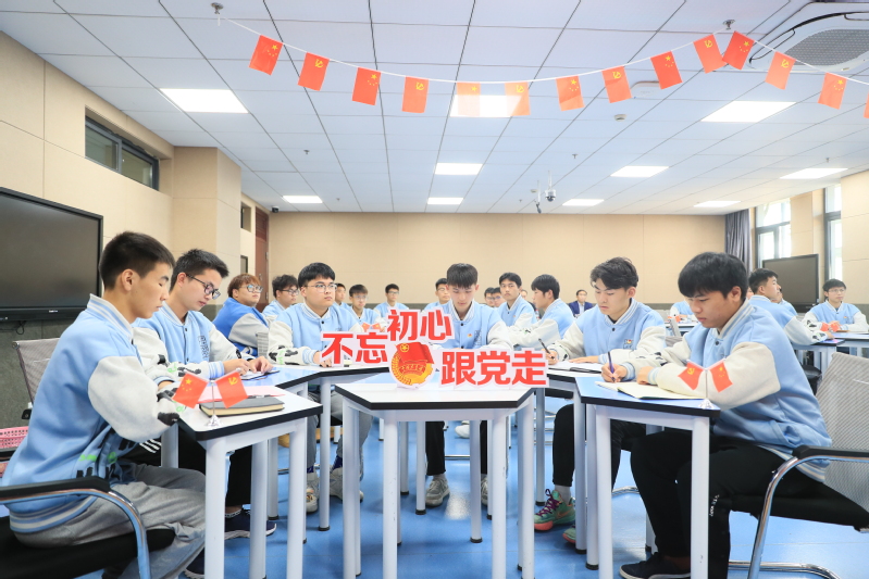 本次主题团课在校团委统一团课设计基础上,结合支部实际分为“学习报告·分享感悟”、“凝聚共识·团结奋斗”、“知行合一·全面发展”和“共读寄语·牢记使命”四个环节。活动中,参会老师和同学们共同重温党的二十大开幕会视频,同学们热烈分享学习感悟并结合学习所得畅谈个人和集体的发展。最后,同学们齐声诵读了党的二十大报告中习近平总书记对青年的寄语。