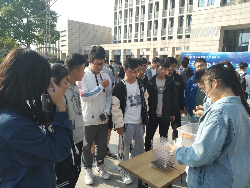 本次大学生课外科技作品展示活动共征集并展示了全校20个学术科技类社团的科技创新作品或成果50余件,大多数社团负责人带来了作品实物进行现场演示,这些创新成果吸引了众多学生驻足观看,展示了捕鱼达人破解版 大学生创新创造的无穷潜能,也让观众感受到了科技创新的魅力。机器人协会的体操机器人及硬币分拣机、自动化协会的光立方、汽车协会的节能模型汽车、三叶树太阳能协会的太阳能小冰箱、机械创新协会的简易招财猫、新能源协会的数字电子时钟、食品安全与检验协会现场进行饮料中糖度和酸度快速测定等作品和项目最吸引同学们的关注,每个社团的负责人通过现场解说、实物演示、互动体验等形式详细讲解了作品设计思路、创新点、主要研究成果等,并现场回答了同学们提出的问题。校团委书记安莹出席活动,鼓励同学们刻苦钻研,勇于创新,做新时代的追梦人。
