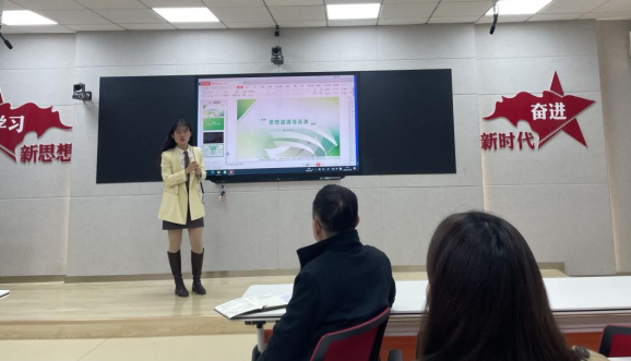 随后,马克思主义学院全体思政教师对《思想道德与法治》第三章展开集体备课研讨。孙苗苗老师积极将党的二十大精神的相关内容融入到教育部统编新课件的讲授过程中,为大家生动示范了“党的二十大精神进课堂”专题说课,并分享了她的教学感受。