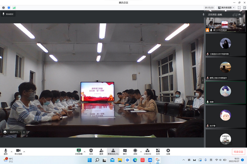 师生座谈,畅通反馈渠道。10月28日19时,学院于B01-309会议室举行“两抓一促”师生座谈会,会议由学院党总支副书记赵越主持、全体辅导员、各班学生干部参会,会议通过腾讯会议线上同步直播。会上,首先由各年级辅导员结合自身工作及近期表现,就早操、晚自习、宿舍违纪、疫情防控安全、课堂秩序、意识形态等问题提出了建议及要求,并布置了下一步的工作计划;其次,各班学生干部结合本班实际情况,依次汇报了“两抓一促”工作的推进情况及难点;最后,由赵越作总结发言,她指出,“两抓一促”教育活动自去年开展以来,如同一场及时雨,对学生行为习惯的养成意义重大,为此她提出三点要求:第一,各位老师在接下来的工作中要认真谋划,周密部署,切实做好学生生活、行为习惯的养成教育;第二,在具体落实过程中要创新形式,点面结合,既要广泛动员,扩大活动的影响力,也要提炼特色,丰富实践载体;第三,各位学生干部要将做好老师和同学之间的桥梁纽带,既要有效将学院的指导思想精准的传达到每一位同学,又要及时将同学中出现的声音及时反馈给老师们,着力发挥传达、示范、引领作用。