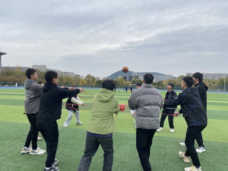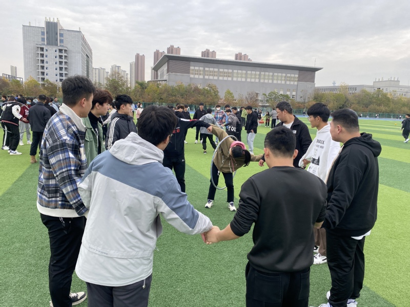 本次趣味运动会活动设有“一圈到底”、“击鼓颠球”、“绑腿竞速跑”和“乒乓接力赛”活动项目。活动开始前,同学们通过抽签形式分成了10个小组,随后每个小组分别选任队长、设计队名等。在“一圈到底”活动中,同学们手牵着手形成一个圆,为了让大圈能快速的通过每一位同学,他们积极思考、齐心协力寻找解决问题的最佳办法,培养了同学们的耐心和信心;在“击鼓颠球”、“绑腿竞速跑”、“乒乓接力赛”活动中,同学们团结互助、积极拼搏、敢于挑战,培养了同学们的合作协作精神。整个活动现场气氛热烈,提高团队成员协作能力的同时,促进交流,增进了情谊。