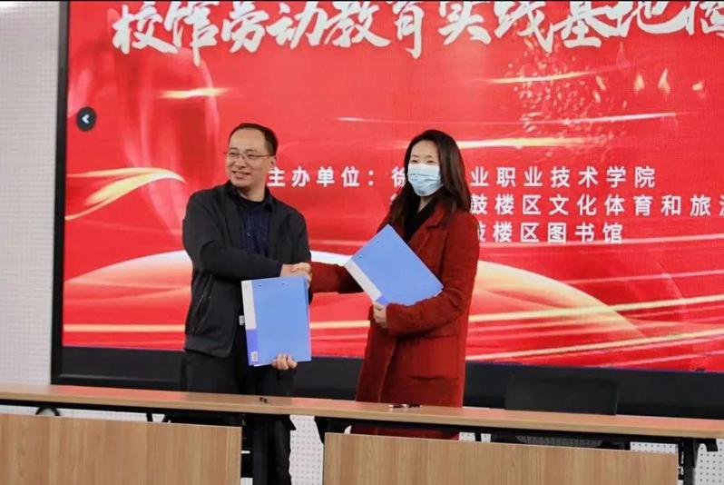 相关职能处室指导下,各二级学院加强校外劳动教育实践基地建设工作。11月18日下午,信息工程学院与徐州市鼓楼区图书馆在区图书馆一楼报告厅举行了校馆劳动教育实践基地揭牌仪式。揭牌仪式由鼓楼区文化体育和旅游局副局长姜彪主持,鼓楼区文化体育和旅游局党组书记、局长王彦飞,鼓楼区图书馆馆长徐巍,校团委书记安莹,信息工程学院党总支书记刘海涛,学工处副处长巩庆伟,信息工程学院党总支副书记韩永印出席活动,鼓楼区图书馆工作人员、各分馆代表及信息工程学院辅导员、学生代表参加了本次活动。