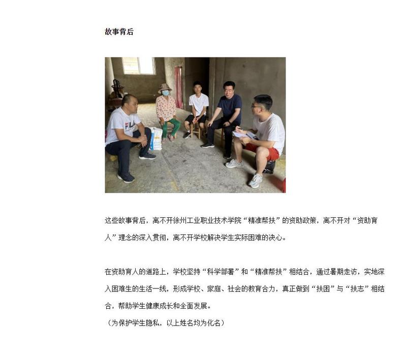 走访老师了解到张盼利用假期时间在新沂县城做兼职给初中生补课,叮嘱他来回路上注意安全,并且为他带来了一些学习生活用品,鼓励他学好专业知识,有困难及时和老师说,他所学的新能源汽车作为新兴产业未来大有可为。