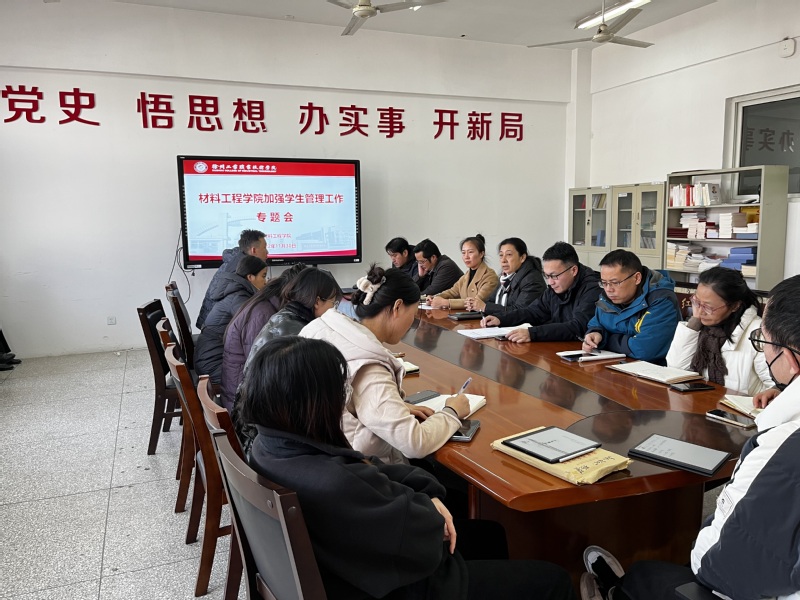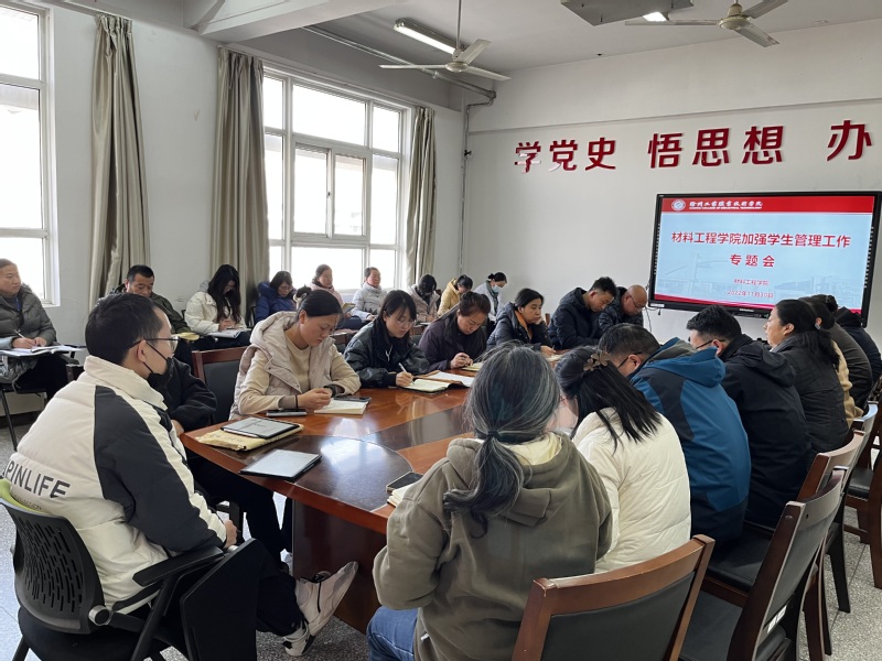 为进一步加强学生管理工作,共同有效解决学生管理工作中的实际问题,提升服务育人水平,11月30日下午,材料工程学院在B05-306会议室召开加强学生管理工作专题会议。学院党总支书记李素婷、副院长柳峰、党总支副书记周树会、副院长丛后罗及学院全体学业导师、辅导员参加会议。会议由党总支副书记周树会主持。
