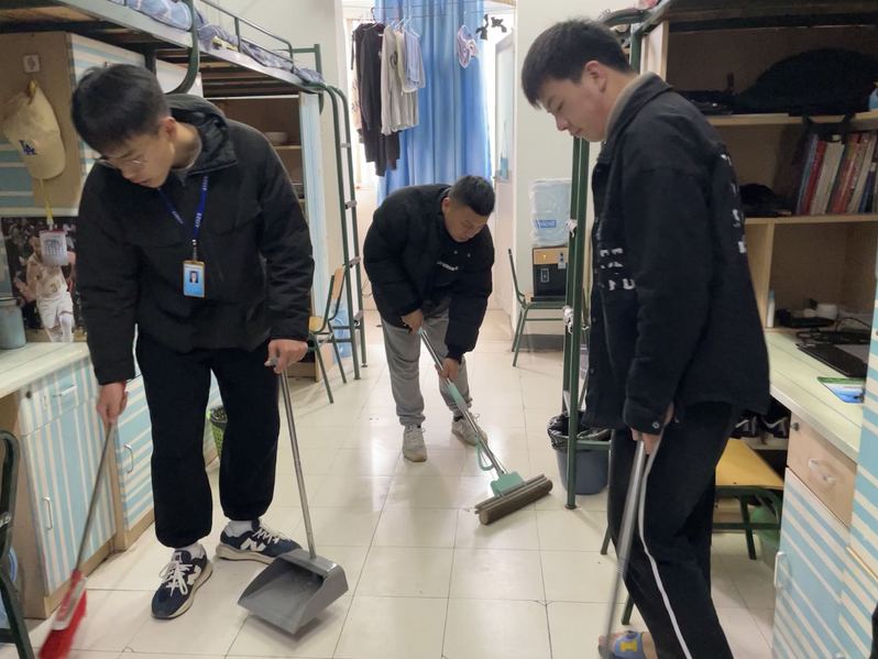 启动仪式后,同学们热情高涨,积极参与到包干区域及宿舍卫生打扫中去。有的清理落叶、有的拔草除杂。年级辅导员深入宿舍,加入学生宿舍卫生劳动,帮助学生整理被褥、消灭卫生死角等。