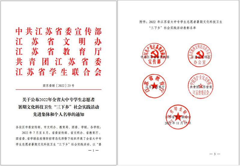 近日,共青团江苏省委员会公布了《关于公布2022年全省大中专学生志愿者暑期文化科技卫生“三下乡”社会实践活动先进集体和个人名单的通知》,捕鱼达人破解版 2022年暑期社会实践活动在全省评比中荣获多个奖项。