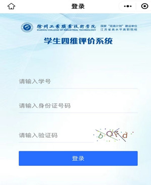 2.系统登录:点击“四维评价”进入小程序登录页,依次输入学生的学号、身份证号及验证码,如下图: