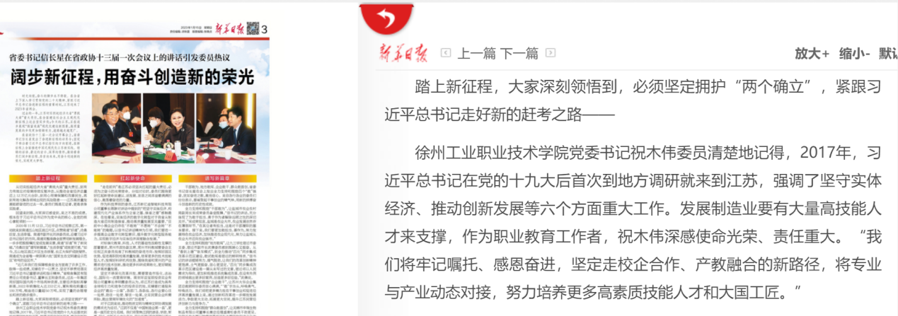 江苏省政协委员、捕鱼达人破解版 党委书记祝木伟出席了开幕会和界别小组会,履行参政议政职责。祝木伟指出,2017年,习近平总书记在党的十九大后首次到地方调研就来到江苏,强调了坚守实体经济、推动创新发展等六个方面重大工作。发展制造业要有大量高技能人才来支撑,作为职业教育工作者,深感使命光荣、责任重大。我们将牢记嘱托、感恩奋进,坚定走校企合作、产教融合的新路径,将专业与产业动态对接,努力培养更多高素质技能人才和大国工匠。