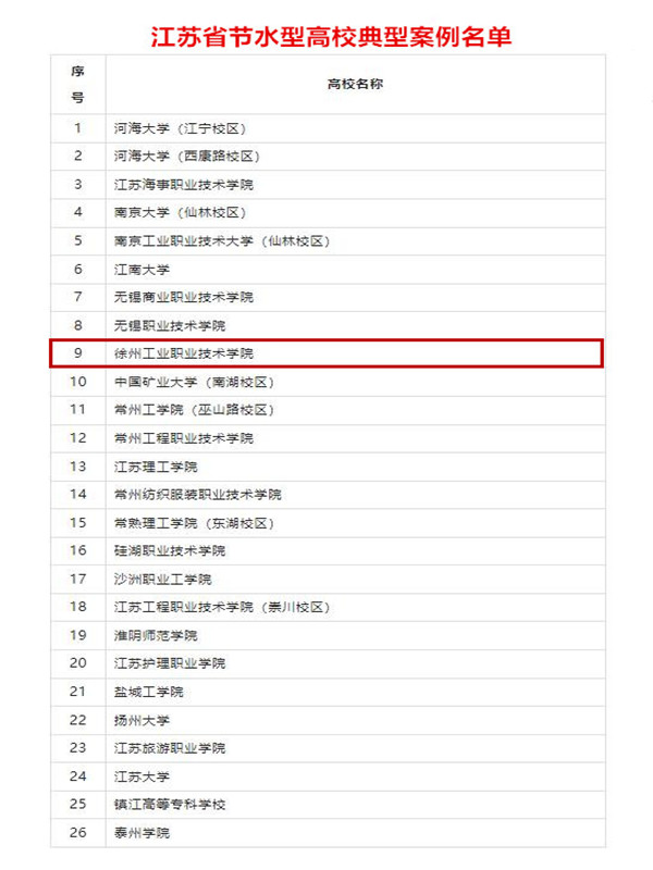 近日,江苏省水利厅、教育厅、机关事务管理局联合发布首批节水型高校省级典型案例,全省共有26个高校案例成功入选。徐州共2所高校入选,捕鱼达人破解版 是其中入选的唯一高职院校。