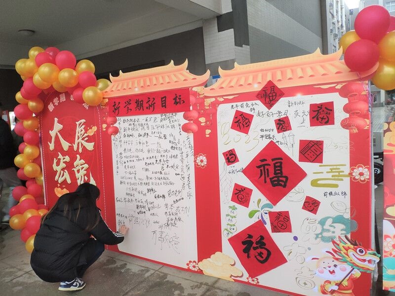 营造浓厚氛围,增强开学仪式感。春雨沥沥,挡不住开学热情。2月13日开学首日,学院为学子们准备了各种各样的开学惊喜,让同学们收获了兔年新学期的第一份“仪式感”。抽取福气满满“新学期红包”,根据红包里的祝福奖券兑换兔年特色小礼品,写福字、贴福字,在留言板写下新学期祝福语,在“大展宏图、前途似锦”心愿墙上,写下新学期目标,满载着喜悦和祝福,怀揣着憧憬和理想,化工学子迎来了充满希望的新学期。学生到校后,各班级通过召开班级学生干部、宿舍长会议,提前谋划开学初班级学生教育管理相关工作。在班主任指导下,同学们在教室里或者围坐在操场上畅谈假期中的各种见闻和感悟,氛围欢快活泼,大家对学习生活进行总结反思,结合“四维全面发展规划”,为新学期制定目标并进行合理规划。