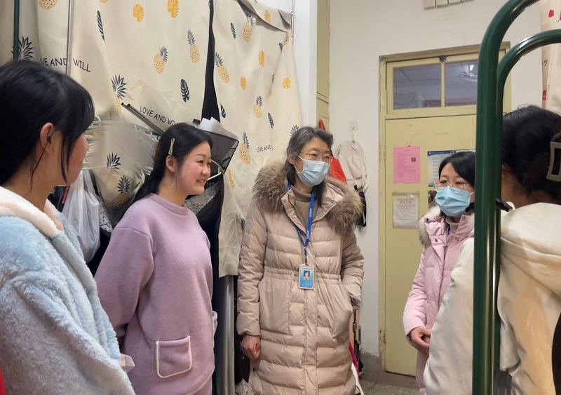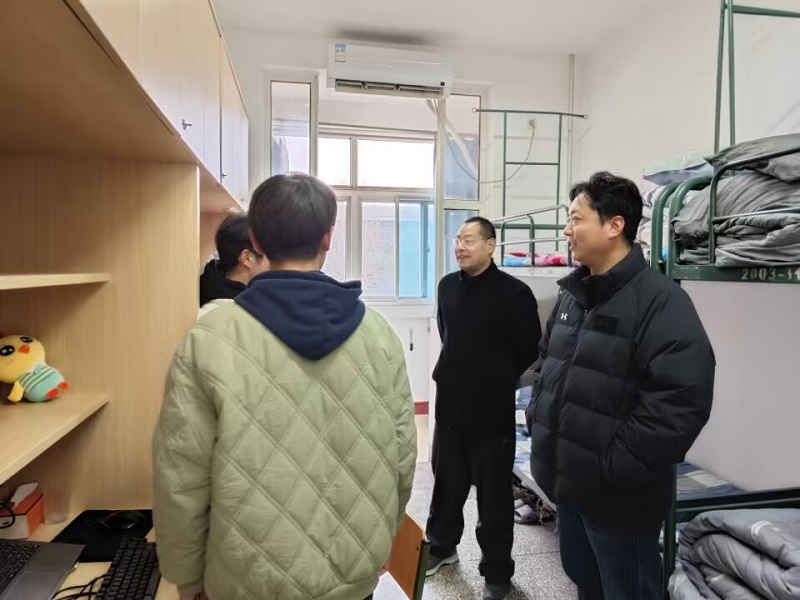 深入宿舍走访,持续提升宿舍育人实效。2月12日,吴红、张雷带领辅导员、班主任深入宿舍,与学生亲切交谈,关心了解学生寒假的学习、生活情况及返校后宿舍中的安全、卫生情况。各宿舍在班主任指导下开展开学前宿舍“第一次卫生大扫除”,确保宿舍安全、整洁,为新学期营造良好的宿舍环境。班主任在开学初及时开展班级学生全覆盖谈心谈话,关注了解学生假期期间的生活变化、思想变化和心理变化,细致开展学生家庭经济困难情况、心理情况和学业困难学生摸排,切实为学生答疑解惑、解决实际困难。