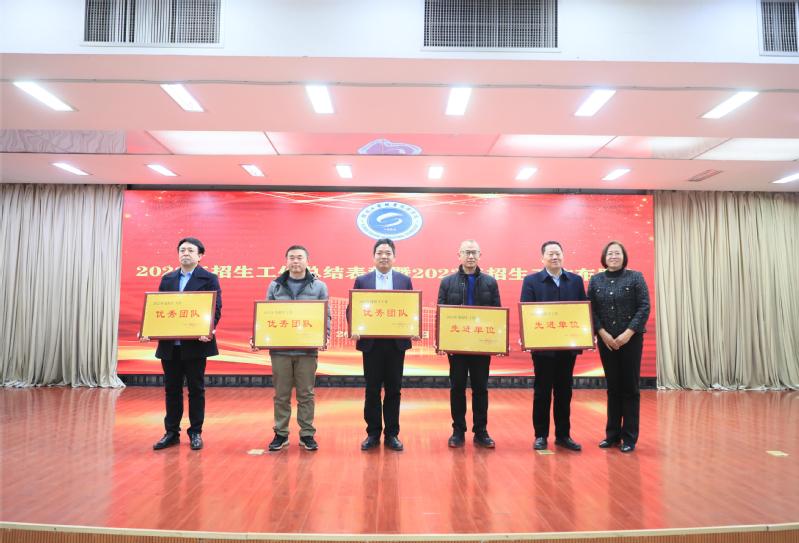 大会对2022年度招生工作先进单位、优秀团队、先进个人进行表彰。纪委书记葛志亮宣读表彰文件,校领导为先进单位和先进个人颁奖。