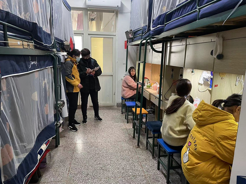 此次检查由学工处副处长巩庆伟带队,检查人员主要对学生宿舍的安全用电情况、内务卫生整理情况等进行了细致的检查,物业管理人员对宿舍整体情况进行了综合评分。检查过程中,结合宿舍情况和同学们的交流情况,巩庆伟强调同学们要高度重视宿舍的安全和卫生,要注意保持宿舍干净整洁,做好个人卫生防护,勤开窗勤通风,更要特别注意用电安全,保证人走电断;同时,希望同学们养成良好的学习生活习惯,以良好的精神状态开启新学期新征程。