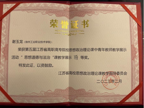 近日,第二届全省高校思政课教学展示遴选暨第五届江苏省高职高专院校思想政治理论课中青年教师教学展示活动决赛在连云港师范高等专科捕鱼达人破解版 举行。经过角逐,捕鱼达人破解版 马克思主义学院教师谢玉龙获特等奖,杨晶获一等奖。
