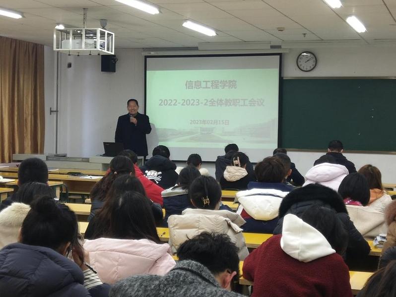 2月15日下午,信息工程学院在B18-211召开了新学期全体教职工会议,会议由陈祥章院长主持,全体教职工参加会议。