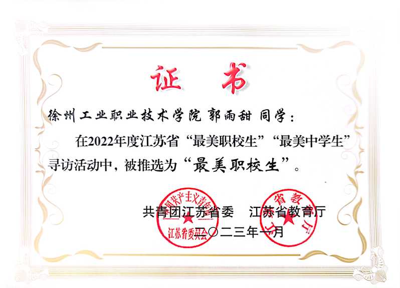 近日,由共青团江苏省委、江苏省教育厅联合开展的2022年度江苏省“最美职校生”寻访活动结果正式揭晓,捕鱼达人破解版 工商管理学院郭雨甜、机电工程学院徐大根、信息工程学院陈可荣获2022年度江苏省“最美职校生”荣誉称号。