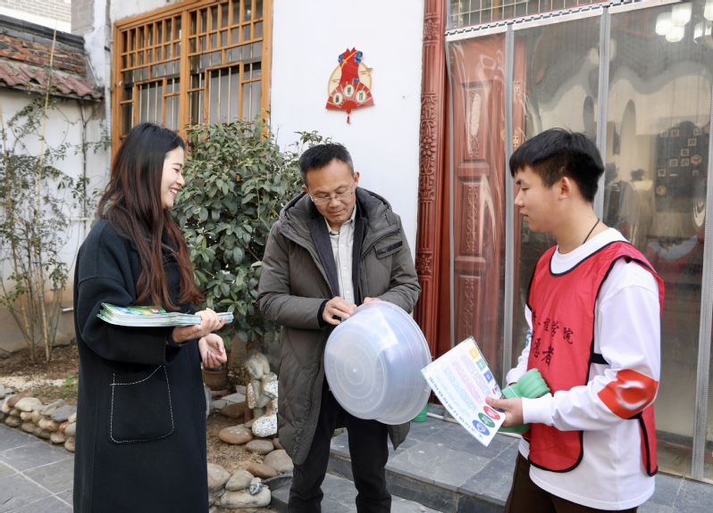 关爱老幼群体,弘扬传统美德。材料学院志愿服务队成员到老人家里和他们聊聊天、帮忙打扫卫生,宣传后疫情时代下做好“自己健康的第一责任人”,做好自我防护;还向老人讲解环保的重要性,发放垃圾分类、低碳生活等宣传资料。