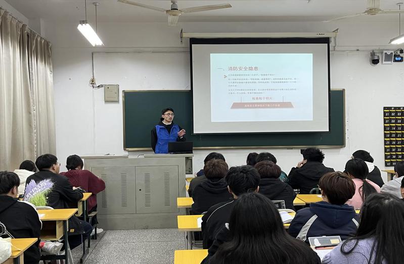 志愿宣讲团走进班级,普及消防知识。为提高志愿宣讲团的宣讲水平与能力,辅导员杨世威老师给宣讲团的同学们进行了消防知识安全培训。各位志愿者经过精心准备,利用晚自习时间走进班级,从火灾类型、校园火灾典型案例和如何预防消防安全隐患三个方面展开消防宣讲活动,提醒同学们一定要树牢“自己是安全第一责任人”的观念。同学们纷纷表示,一定会从自身做起、从小事做起,提高消防意识,把消防安全牢记心中。