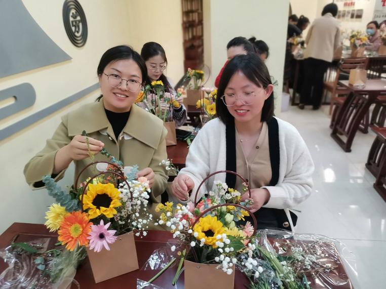 为庆祝第113个“三八”国际劳动妇女节,建筑工程学院妇联与继续教育学院妇联在九里书院联合举办了“诗情花艺 优雅同行”悦享三月花束制作活动,建筑工程学院与继续教育学院全体女教职工参加了本次活动。