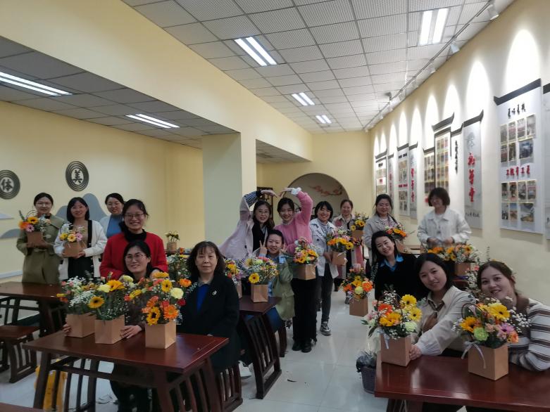 置身于鲜花丛中的女教职工们兴致盎然,整个插花培训活动历时1个多小时。活动接近尾声时,一件件春意盎然、清新淡雅的插花作品展现在面前,大家相互欣赏,纷纷手捧着自己的作品一起合影,喜悦之情溢于言表。通过本次花束制作活动,女教职工们对插花艺术有了初步的了解并纷纷表示,要把所学到的插花技术运用到今后的生活中,在生活中更好地发现美、感受美、制造美,提升幸福感,用更加饱满的精神状态投入到工作中。