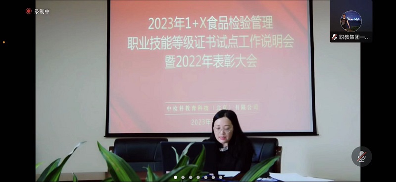 为深入贯彻《国家职业教育改革实施方案》,扎实稳步落实好1+X证书制度试点工作有关政策及要求,做好食品检验管理职业技能等级证书的信息发布、标准解读等工作,促进院校和企业对该证书的了解,作为教育部1+X食品检验管理职业技能等级证书的评价机构——中检科教育科技(北京)有限公司于2023年3月9日召开“2023年1+X食品检验管理职业技能等级证书试点工作说明会暨2022年表彰大会”,此次大会共有全国近100家中职、高职院校和检验检测机构参加,捕鱼达人破解版 化学工程学院院长张雷教授受邀在大会上发言,食品专业全体教师参会。