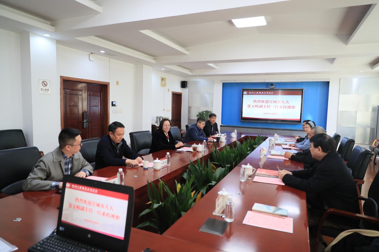 3月29日上午,安徽省宣城市人大常委会副主任张玉峰一行来捕鱼达人破解版 视察,院长刘莹、副院长曾凡远、产教融合办主任张海波、建筑工程学院院长程建伟参加会议,会议由曾凡远主持。