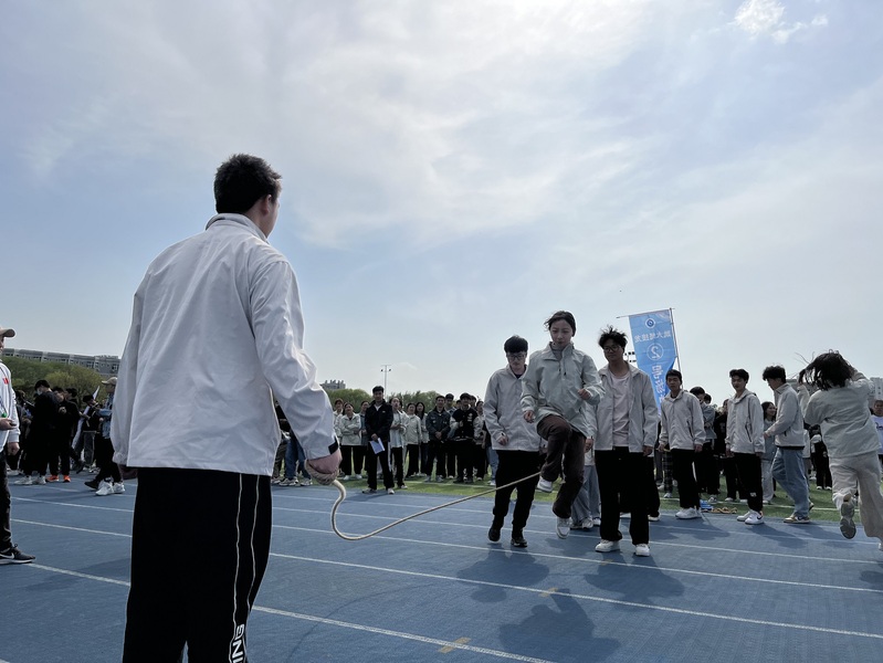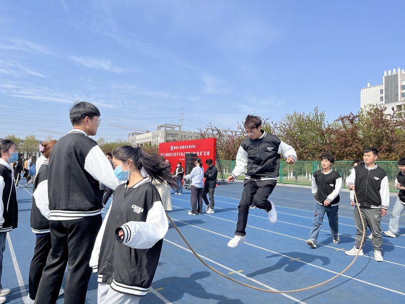 开幕式结束后,体育文化节的第一项比赛“跳大绳接龙比赛”拉开帷幕,在裁判组有条不紊地组织下,各学院代表队纷纷投入到激烈的比赛中,一个个轻盈腾空跃起的身姿、一声声掷地有声的摇绳,勾勒出一幅幅青春张扬的运动场景。呐喊声、欢呼声连成一片,他们挥洒汗水、他们舞动青春,整个田径场成为一片欢乐的海洋。
