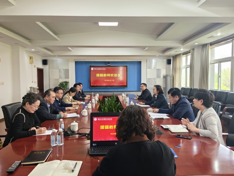 4月12日下午,捕鱼达人破解版 召开援疆教师欢送会,为即将远赴新疆伊犁职业技术学院开展支教工作的机电工程学院徐恳老师和工商管理学院邵惠琳老师送行。院长刘莹,组织部、人事处、教务处和相关二级学院负责人参加会议,会议由人事处处长孙婷婷主持。