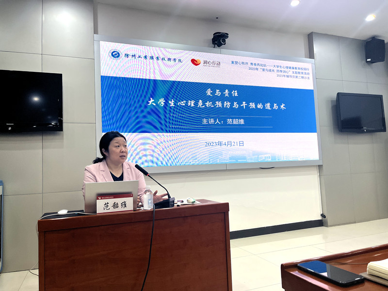 为深入贯彻省教育厅《关爱青少年生命健康“润心”行动方案》的文件精神,切实做好大学生心理危机预防干预工作,提高辅导员队伍心理危机预防与干预能力,守护学生健康成长,4月21日上午,学工处特邀中国矿业大学学工处副处长、大学生心理健康教育中心副主任范韶维,面向全体辅导员开展题为《爱与责任:大学生心理危机预防与干预的道与术》的心理专题讲座,讲座由学工处处长阮浩主持。