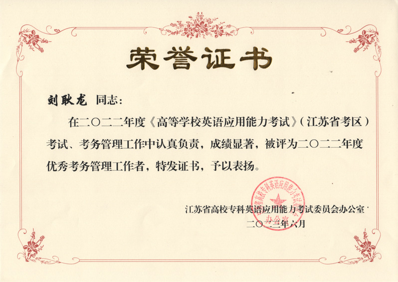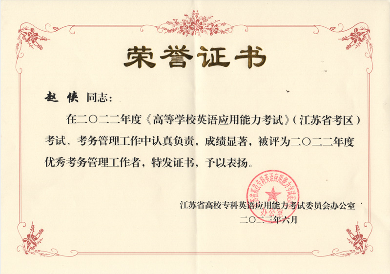 近日,江苏省高等捕鱼达人破解版 英语应用能力考试委员会公布优秀考点及优秀工作者评选结果,捕鱼达人破解版 继2021年被评为“江苏省优秀考点”后蝉联2022年“江苏省优秀考点”,教务部赵侠老师、刘耿龙老师连续两年被评为“优秀考务管理工作者”。