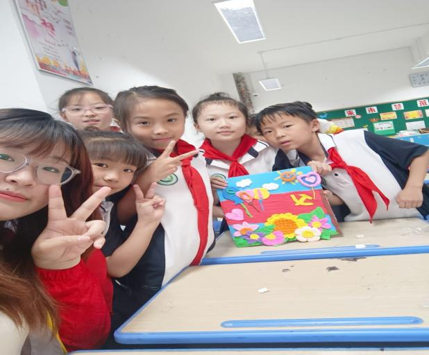 “精神印童心”——黏土手工制作活动。为了加深孩子们的印象,实践团成员们带领孩子们一起动手,制作一幅幅“红色”作品;一起了解每一个图案所代表的含义,加深孩子们对深厚的革命情感和厚重的红色精神的理解,将爱国主义“印”入孩子的心中。看着自己的作品,孩子们纷纷表示,要好好读书,长大后做一个对祖国、对人民有用的人!在孩子们响亮的口号声中,活动落下帷幕。