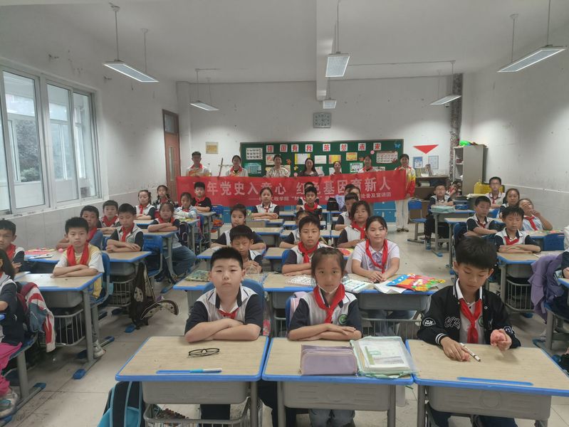 “童语传党史”——一堂“党的知识”理论学习课。结合学生的年龄特点,运用教育智慧,使少儿“党的知识”更加贴合实际、多元化。通过历史图片、历史故事等方式向学生们生动地再现了中国共产党从诞生到不断走向辉煌的光辉历程。万里长征中一个个鲜活的革命故事,李大钊、杨根思等一个个优秀的共产党员,王二小、张嘎等一个个视死如归的抗战小英雄,引起同学们的深刻思考和广泛共鸣。