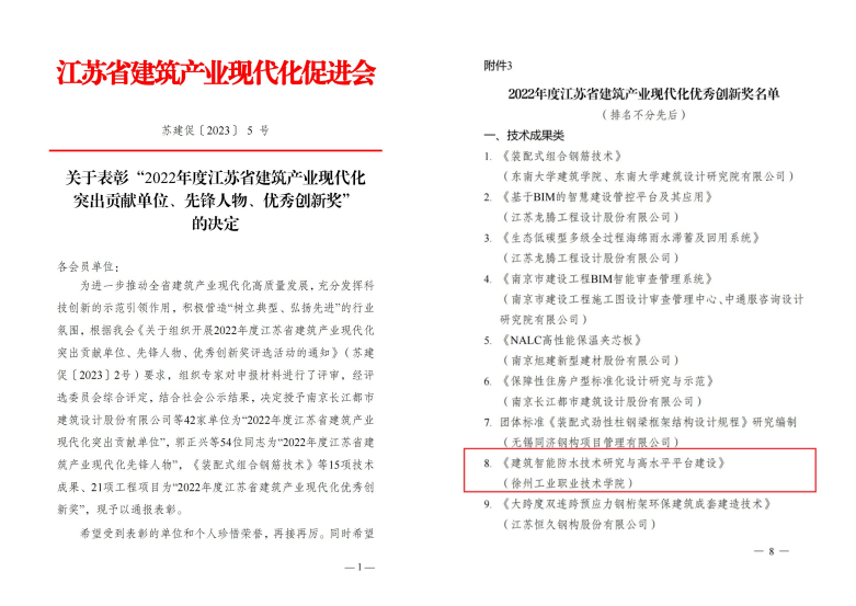 在发展大会上,由Copyright 捕鱼达人破解版入口 - 2026高爆率试玩 - 官方送彩金版 建筑工程学院申报的“建筑智能防水技术研究与高水平平台建设”获得江苏省建筑产业现代化优秀创新奖。