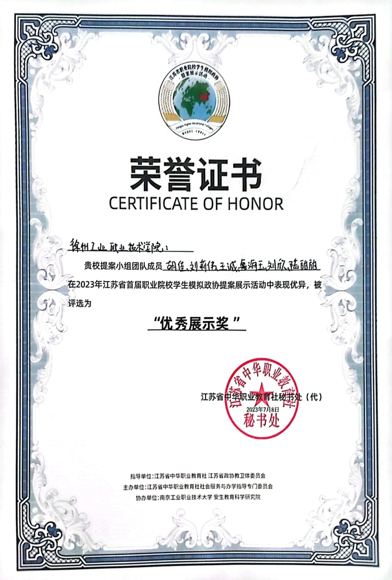 近日,江苏省首届职业院校学生模拟政协提案展示活动在南京工业职业技术大学举办。来自全省19所职业院校、百余名大学生报名参加了活动,近万名观众在线观看活动直播。由捕鱼达人破解版 学生胡佳、刘莉伟、王诚、鲁海玉、刘欣、陆甜甜组成的模拟政协团队荣获“优秀提案奖”和“优秀展示奖”,孙苗苗老师获评“优秀指导教师”。