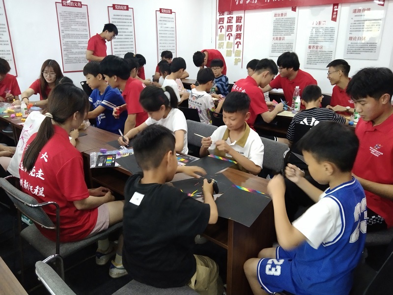简单的休息之后,全体实践团成员和小朋友们一起走进“心灵驿站”,带领小朋友们相继开展了绘画、折纸、捏彩泥、搭积木等小游戏,团队成员与孩子们一起互动,一起充分发挥想象力和创造力,愉悦的笑声充满着整个房间,每一个孩子的脸上都洋溢着欢快的笑容,每一个人都切实感受着欢乐,增进了彼此间的情感交流,营造了关爱关心农村儿童的良好氛围。