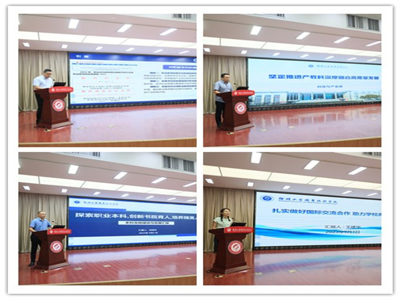 教务部、科产部、本科生院、国际教育学院四个部门负责人依次作了题为“建设高水平专业群助推捕鱼达人破解版 内涵式发展”“坚定推进产教科深度融合高质量发展”“探索职业本科,创新书院育人,培养精英人才”“深化国际交流工作,助力捕鱼达人破解版 高质量发展”的专项报告。在会议讨论环节,与会人员分成四组,聚焦主题报告与相关专题报告涉及的重点问题进行了讨论,并依次汇报讨论结果,为捕鱼达人破解版 高质量发展积极建言献策。