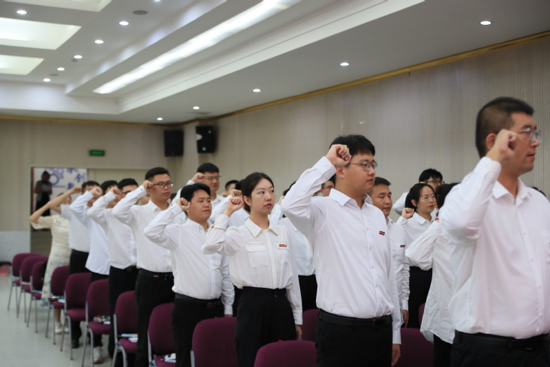 在鲜红的国旗面前,2023年新教师进行入职宣誓,用庄严的誓词开启自己成为人民教师的荣誉时刻。铿锵有力的宣誓词表达了他们立志做一名光荣的人民教师,为祖国培养合格的社会主义建设者和接班人的坚定信心和决心,也是对人民教育事业立下的庄严承诺。