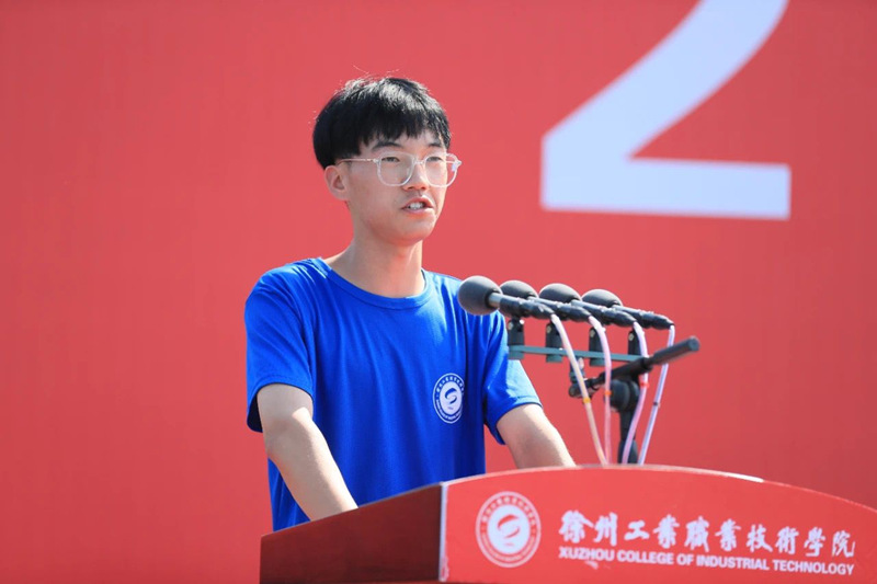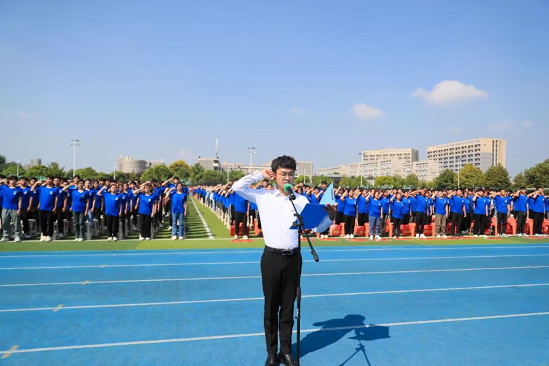 国家奖学金获得者、江苏省三好学生、汽车工程学院电气自动化2102班王绪同学领誓,全体2023级新生举起右拳,进行集体入学宣誓。一遍遍铿锵有力的誓言,发出了“青春有为、强国有我”的最强音。