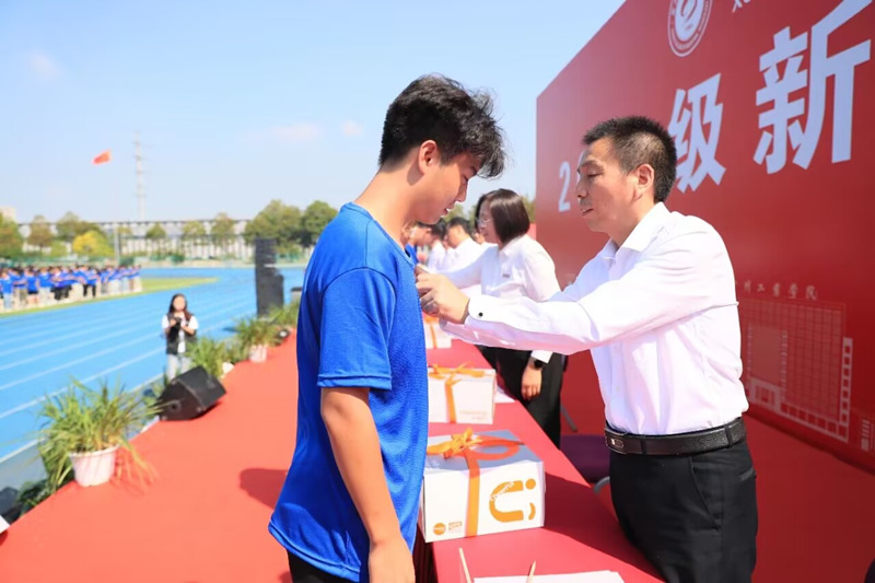 张芳儒宣读了《关于表彰2023级优秀新生的决定》,进行了2023级新生奖学金颁奖仪式,为全体同学树立榜样。主席台就座领导为获得“新生特等奖学金”“新生二等奖学金”的学生颁发证书,鼓励同学们牢记强国志、践行报国行,珍惜韶华,在工院度过一段充实、美好的大学时光。