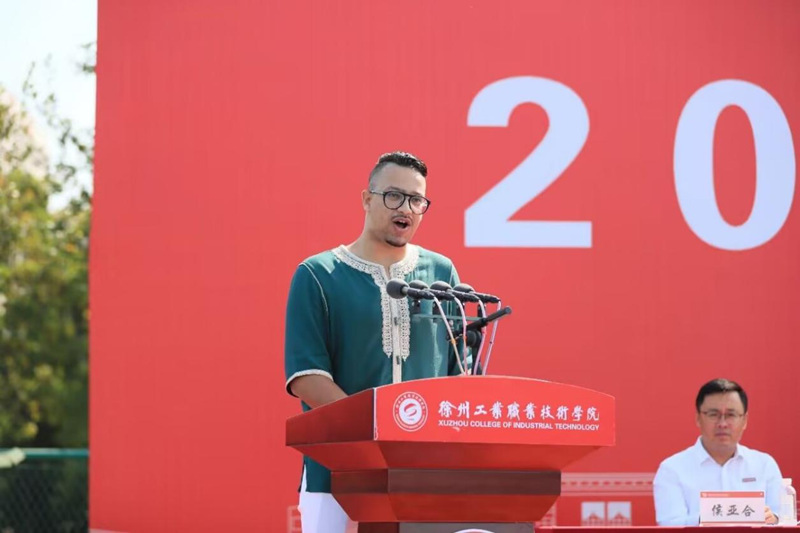 优秀留学生校友代表2021届摩洛哥留学生王小龙发言。他表示很感谢有在工院学习的机会,将用自己的知识和能力传播中国博大精深的文化,努力拉近两国的距离、成为两国友谊的桥梁。