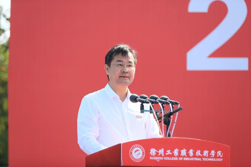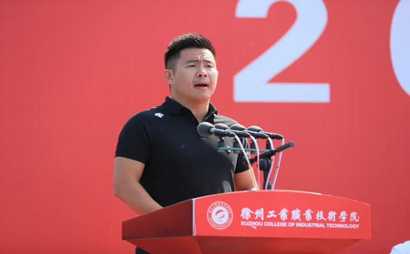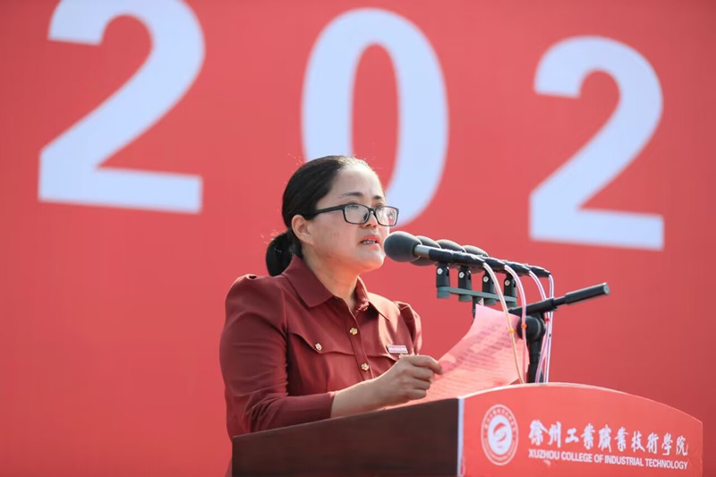 教师代表、全国职业技能大赛优秀指导教师、江苏省“青蓝工程”优秀教学团队带头人、工商管理学院教师张晓燕发言,她对各位新同学加入工院表示欢迎,并寄语同学们要珍惜宝贵的大学时光,用拼搏书写青春故事,用拼搏为青春增光添彩。