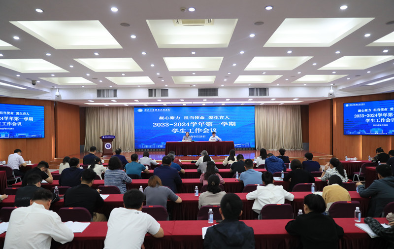 9月28日上午,捕鱼达人破解版 在图书馆报告厅召开2023-2024学年第一学期学生工作会议。党委书记刘莹、纪委书记葛志亮出席会议,二级学院党总支(直属党支部)书记、副书记,学工部、团委全体人员以及全体辅导员参加本次会议。会议由葛志亮主持。