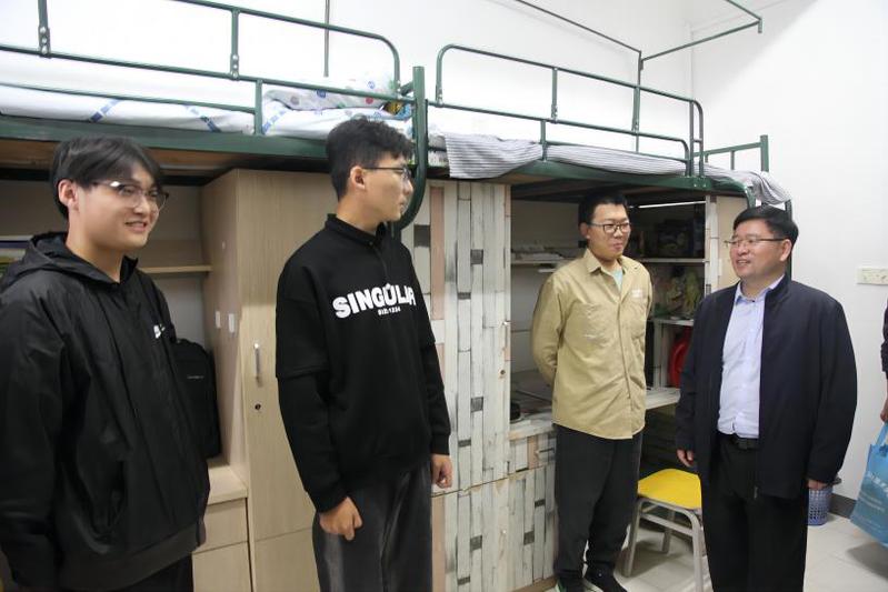 校领导走进宿舍,向同学们致以节日的问候,详细了解他们开学以来的学习情况与生活状态,认真倾听同学们对学习生活和服务管理等方面的意见、建议,嘱咐他们离校外出要注意安全,度过一个平安而又充实的中秋国庆假期。